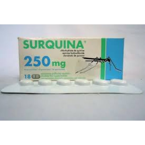 | Description | SURQUINA 250 mg, comprimé pelliculé sécable Quinine base Encadré Veuillez lire attentivement l'intégralité de cette notice avant de prendre ce médicament. ·Gardez cette notice, vous pourriez avoir besoin de la relire. ·Si vous avez toute autre question, si vous avez un doute, demandez plus d'informations à votre médecin ou à votre pharmacien. ·Ce médicament vous a été personnellement prescrit. Ne le donnez jamais à quelqu'un d'autre, même en cas de symptômes identiques, cela pourrait lui être nocif. ·Si l'un des effets indésirables devient grave ou si vous remarquez un effet indésirable non mentionné dans cette notice, parlez-en à votre médecin ou à votre pharmacien. Sommaire notice Dans cette notice : 1. QU'EST-CE QUE SURQUINA 250 mg, comprimé pelliculé sécable ET DANS QUELS CAS EST-IL UTILISE ? 2. QUELLES SONT LES INFORMATIONS A CONNAITRE AVANT DE PRENDRE SURQUINA 250 mg, comprimé pelliculé sécable ? 3. COMMENT PRENDRE SURQUINA 250 mg, comprimé pelliculé sécable ? 4. QUELS SONT LES EFFETS INDESIRABLES EVENTUELS ? 5. COMMENT CONSERVER SURQUINA 250 mg, comprimé pelliculé sécable ? 6. INFORMATIONS SUPPLEMENTAIRES 1. QU'EST-CE QUE SURQUINA 250 mg, comprimé pelliculé sécable ET DANS QUELS CAS EST-IL UTILISE ? Classe pharmacothérapeutique ANTIPALUDIQUE. (P: Parasitologie). Indications thérapeutiques Ce médicament est un antipaludique à base de quinine. Il est préconisé dans le traitement des crises de paludisme (le paludisme est une maladie causée par un parasite microscopique, il est transmis par les piqûres de moustiques et il sévit dans les pays tropicaux. Cette maladie doit être dépistée et traitée rapidement). Ce médicament reste actif sur des parasites devenus résistants à certains des médicaments habituels (en particulier dans les régions de chloroquinorésistance). Ce médicament ne constitue pas le traitement préventif du paludisme 2. QUELLES SONT LES INFORMATIONS A CONNAITRE AVANT DE PRENDRE SURQUINA 250 mg, comprimé pelliculé sécable ? Liste des informations nécessaires avant la prise du médicament Sans objet. Contre-indications Ne prenez jamais SURQUINA 250 mg, comprimé pelliculé sécable dans les cas suivants: ·certains troubles du rythme cardiaque, ·antécédent de fièvre bilieuse hémoglobinurique, ·antécédent d'allergie à l'un des composants. EN CAS DE DOUTE, IL EST INDISPENSABLE DE DEMANDER L'AVIS DE VOTRE MEDECIN OU DE VOTRE PHARMACIEN. La quinine ne doit pas être associée à un traitement à base d'astémizole. Précautions d'emploi ; mises en garde spéciales Faites attention avec SURQUINA 250 mg, comprimé pelliculé sécable: Mises en garde spéciales Attention, en cas d'émission d'urine rouge après la prise de ce médicament demander conseil à un médecin AVANT LA PRISE SUIVANTE DU MEDICAMENT. Si l'exposition au risque de paludisme persiste après le traitement d'une crise de paludisme par la quinine, un traitement préventif adapté peut être envisagé. Demandez l'avis de votre médecin. EN CAS DE DOUTE NE PAS HESITER A DEMANDER L'AVIS DE VOTRE MEDECIN OU DE VOTRE PHARMACIEN. Interactions avec d'autres médicaments Prise ou utilisation d'autres médicaments La quinine ne doit pas être associée à un traitement à base d'astémizole. Veuillez indiquer à votre médecin ou à votre pharmacien si vous prenez ou avez pris récemment un autre médicament, même s'il s'agit d'un médicament obtenu sans ordonnance. Interactions avec les aliments et les boissons Sans objet. Interactions avec les produits de phytothérapie ou thérapies alternatives Sans objet. Utilisation pendant la grossesse et l'allaitement Grossesse et allaitement En cas de paludisme, et dans les conditions normales d'utilisation, ce médicament peut être utilisé pendant la grossesse. Respectez soigneusement les doses prescrites. En cas de traitement avec ce médicament, l'allaitement est possible. D'une façon générale, il convient au cours de la grossesse et de l'allaitement, de toujours demander l'avis de votre médecin ou de votre pharmacien avant de prendre un médicament. Sportifs Sans objet. Effets sur l'aptitude à conduire des véhicules ou à utiliser des machines Conduite de véhicules et utilisation de machines: L'attention est attirée chez les conducteurs de véhicules et les utilisateurs de machines sur les risques de vertiges et troubles de la vision, attachés à l'emploi de ce produit qui pourront compromettre l'aptitude à conduire des véhicules et à utiliser des machines. Liste des excipients à effet notoire Sans objet. |