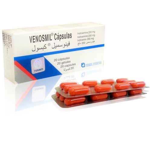| Description | PRESENTATION Packages containing 20 and 60 capsules. OTHER PRESENTATIONS VENOSMIL gel, 60 g tube. STORAGE OF VENOSMIL Protect from heat and humidity. Store below 25 C. Expiry This drug should not be used after the expiry date on the package. KEEP VENOSMIL OUT OF THE SIGHT AND REACH OF CHILDREN Prescription drug. Manufacturer and licence holder FAES FARMA, S.A. C/ Máximo Aguirre, 14 48940 Leioa (España-Espagne-Spain) Hidrosmin COMPOSITION Each capsule contains 200 mg of hidrosmin as the active ingredient. The other components are: magnesium stearate excipient. The gelatine capsule contains: Gelatine, erythrosine (E127), orange yellow S (E110), quinoline yellow (E104) and titanium dioxide (E171). PHARMACOLOGICAL ACTION Hidrosmin is a drug pertaining to the flavonoid family that combats the consequences of pooling of blood in the veins in the inferior extremities (also known as venous insufficiency) in those cases where difficulties in normal functioning are observed, a condition which is generally a result of varicose veins or old thrombosis. INDICATIONS Venosmil is used to provide short term relief (two-three months) of edemas and symptoms related with chronic venous insufficiency (pain, heavy legs, swelling, etc.). INTERACTION WITH OTHER DRUGS AND FOODS Inform your doctor or chemist if you are taking or have recently taken any other drugs, including those unprescribed by your doctor. No interactions with food substances or other drugs have been observed, however, no other drugs should be taken, unless they have been prescribed by your doctor. CONTRAINDICATIONS, PRECAUTIONS AND INCOMPATIBILITIES Venosmil should be taken with extreme caution, therefore please consult your doctor should any of the following situations arise: • If you observe any hypersensitive reactions to this drug or any of its components. • It you have suffered asthma or are allergic to aspirin. Pregnancy If you think you are pregnant or believe you might be, consult your doctor prior to taking this drug. Taking into account that there is no appropriate evidence-based information on the safety of Venosmil during pregnancy, its use should be avoided during the same. Lactation No decisive data is available on the elimination of hidrosmin in maternal milk and as such should not be used during the lactation period. |